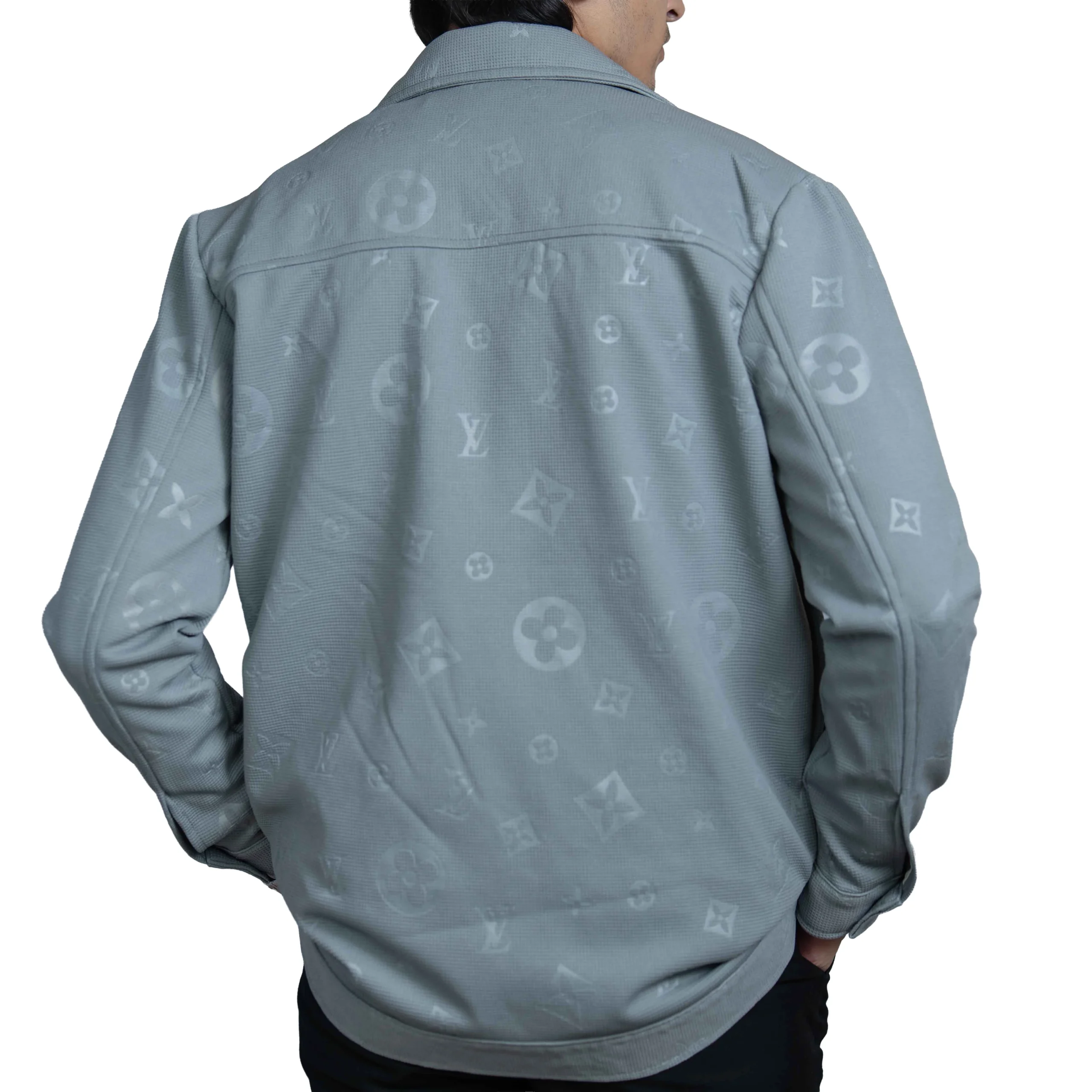 Men’s Slate Grey Vintage Allover Jacquard Cotton ShacketMen’s Slate Grey Vintage Allover Jacquard Cotton Shacket