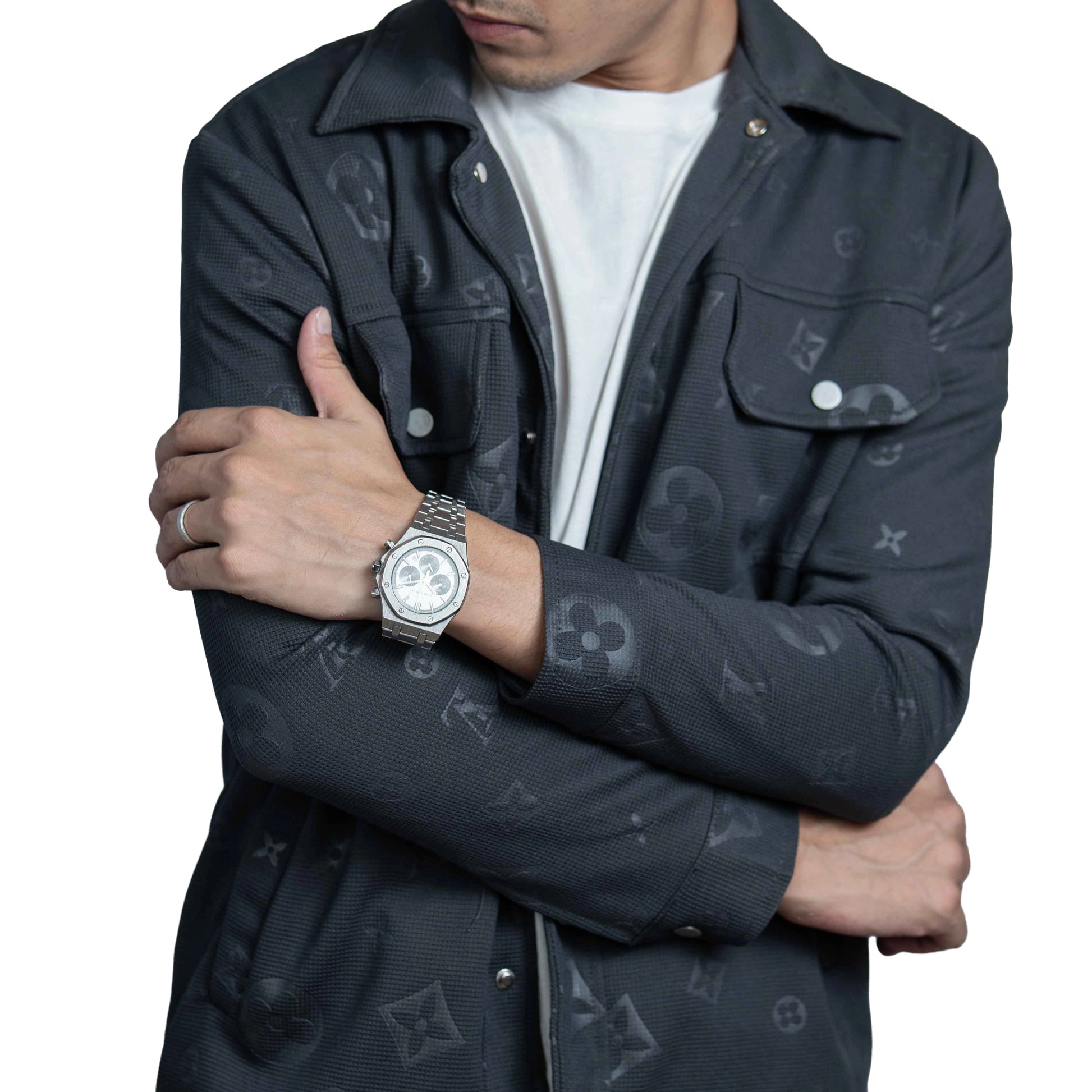 Men’s Charcoal Vintage Allover Jacquard Cotton Shacket